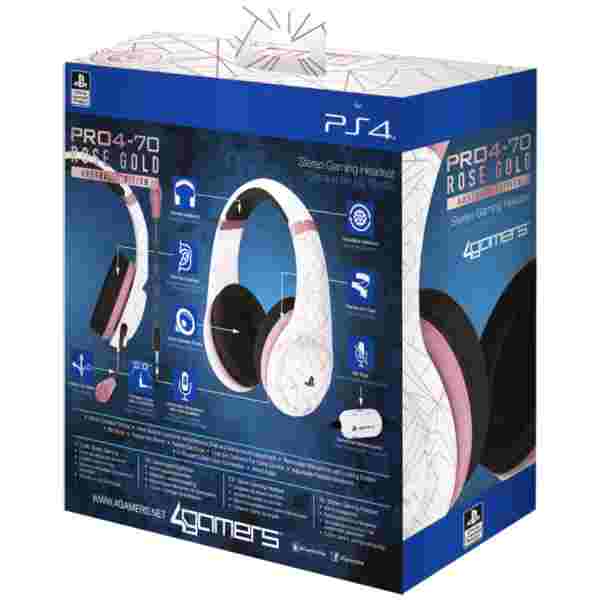 4GAMERS PS4 STEREO GAMING HEADSET ROSE GOLD EDITION – ABSTRACT WHITE