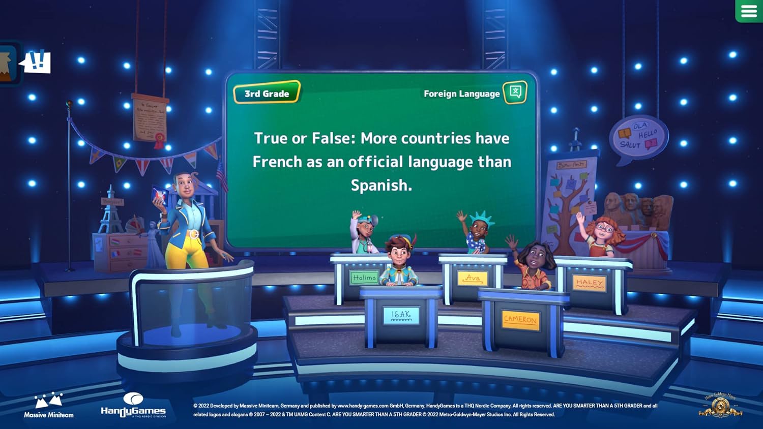 Preveri svoje znanje v zabavni družinski kvizni igri z več kot 6800 vprašanji! Čakajo te vprašanja z več možnimi odgovori, izzivi pravilno ali napačno ter miniigre v 24 različnih šolskih predmetih, kot so živali, besedišče, matematika in še več.