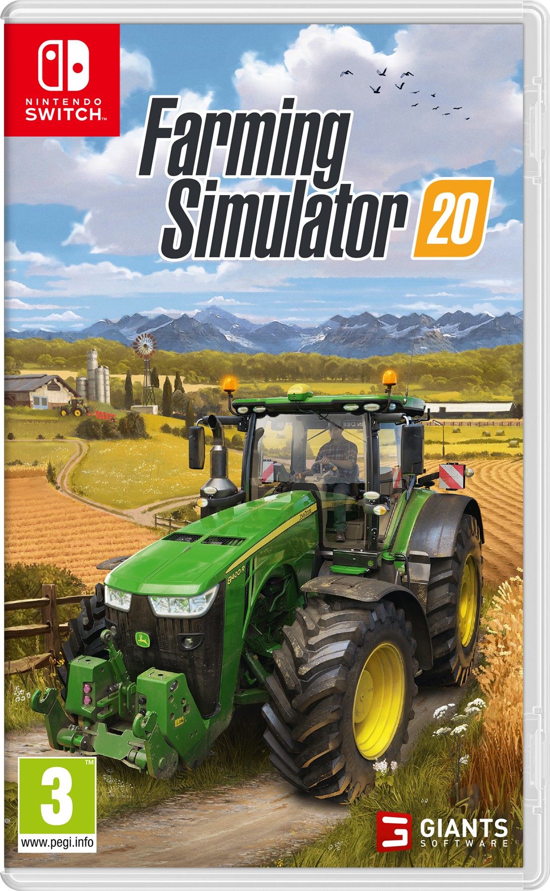 V igri Farming Simulator 20 prevzemite nadzor nad vozili in stroji, ki so natančno poustvarjeni po vodilnih blagovnih znamkah v industriji. Med njimi je tudi John Deere, največje podjetje za kmetijsko mehanizacijo na svetu. Vozite tudi druge znane kmetijske znamke, kot so Case IH, New Holland, Challenger, Fendt, Valtra, Krone, Deutz-Fahr in številne druge. Farming Simulator 20 vsebuje novo severnoameriško okolje, v katerem lahko razvijate in širite svojo kmetijo. Uživajte v številnih razburljivih kmečkih dejavnostih, vključno z novimi stroji in pridelki z bombažem in ovsom, ki so novost za Nintendo Switch! Skrbite za živino, ki jo sestavljajo prašiči, krave in ovce, zdaj pa lahko jahate tudi svoje konje, kar vam omogoča, da na povsem nov način raziskujete prostrano zemljo okoli svoje kmetije.