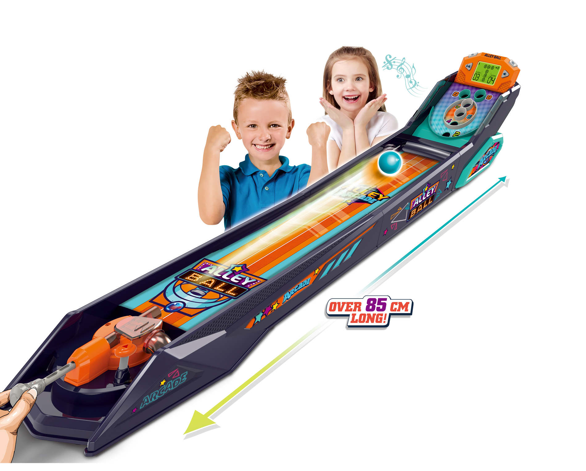 Namizna igra ima zvok in lučko in elektronski zaslon za prikaz rezultata. Primerna je za 1 ali 2 igralca. Postavi žogico na začetno pozicijo, ciljaj in s pomočjo ročice streljaj. Cilj igre je zbrati čimveč točk. Možnost nastavitve jakosti zvoka, luči, izbire načina igre in gumb za vklop ali pavzo med igro. Dimenzija: 89 x 14,5 x 25cm. Za igro so potrebne baterije 3x 1,5V AA, ki niso priložene. Primerna za otroke starejše od 3 let.
