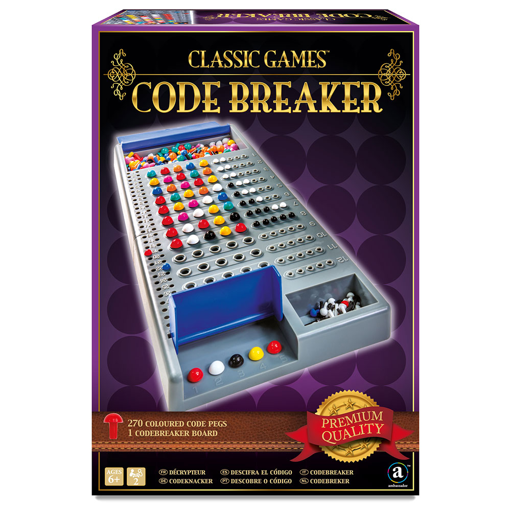 Skrivna koda – klasična igra (podobna igri Mastermind), izdelana iz vrhunskih materialov. Velika igralna plošča in pisani plastični žebljički v lični in kakovostni darilni embalaži s pozlačenim napisom.