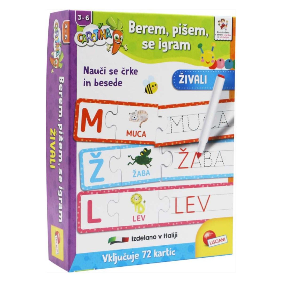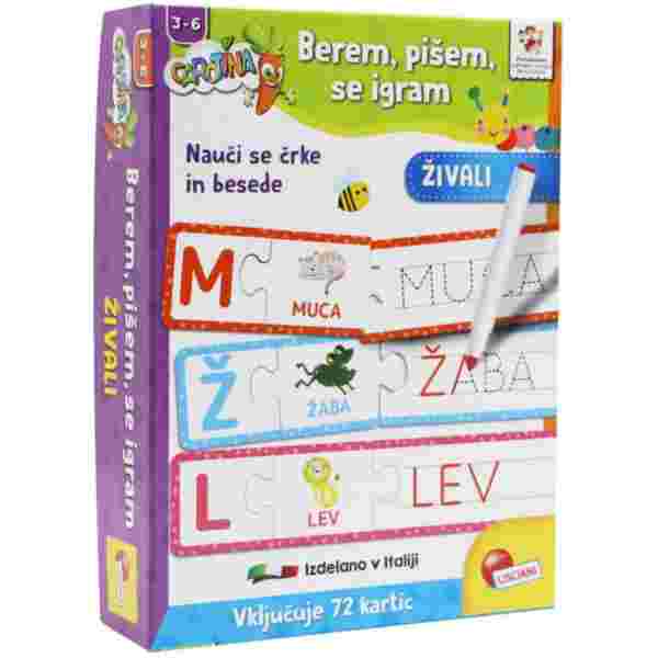 Z zabavno igro Berem, pišem se igram bo malček pričel spoznavati črke in besede. Igra spodbuja otroka k prepoznavanju in učenju črk, tako da žival poveže s prvo črko njenega imena. S priloženim piši-briši pisalom otrok vadi pisanje besed tako, da med seboj povezuje pike. Na ta način uri svoje fine motorične sposobnosti in pisanje besed.