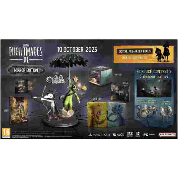 Prednaročite Little Nightmares III in se pripravite na svet, kjer ima strah mnogo obrazov! Prejmite komplet temnih kostumov Six – zastrašujočo preobleko za lika Low in Alone, ki ju spremlja temačni odsev deklice, ki je pobegnila iz Čeljusti.