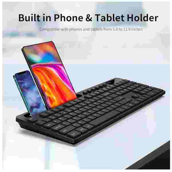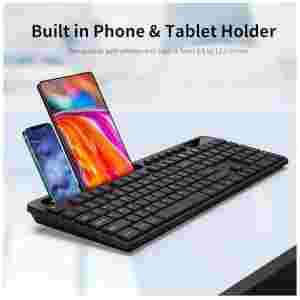 MARVO OFFICE KC411 je brezžični komplet tipkovnice in miške, ki ponuja izjemno udobje in funkcionalnost za vaše računalniške potrebe. Ta ergonomska tipkovnica združuje brezžično povezljivost s stojalom za telefon ali tablični računalnik, kar omogoča še večjo praktičnost in organiziranost na vašem delovnem mestu.