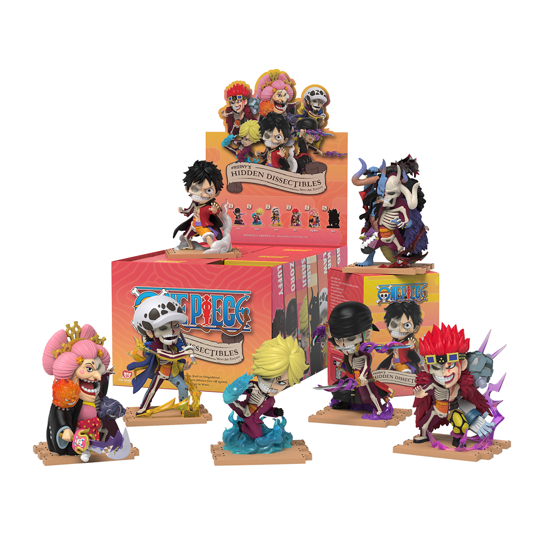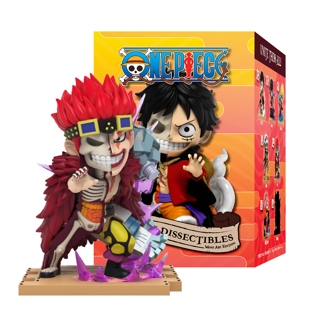 Napad na Onigašimo se začne! Silovite sile se spopadejo v seriji Freeny’s Hidden Dissectibles: One Piece (Wano). Poleg povsem novih likov, kot so Big Mom, Kaidou in Kid, v tej seriji prenovljeno podobo dobijo tudi vračajoči se liki, kot so Trojica pošasti (The Monster Trio) ter Law — vse to z namenom ujeti bistvo najpomembnejših trenutkov tega zgodbenega loka.