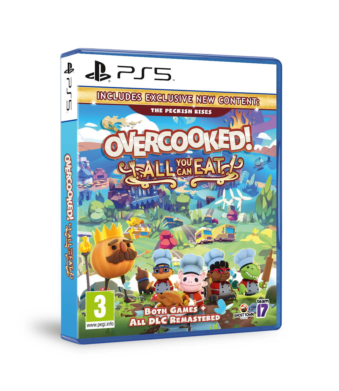 Overcooked je priljubljena arkadna igra, v kateri morate z risankastim kuharjem hitro kuhati in deliti hrano lačnim jedcem, pri tem pa premagovati vse bolj nemogoče ovire. Doslej sta izšla dva dela, ki ju je spremljalo veliko dodatne vsebine. All You Can Eat pa je kompilacija za PS5 in Xbox Series X, ki na enem mestu združujeta osnovni igri, vso dodatno vsebino zanju in novosti. Ta “definitivna edicija” prinaša več kot dvesto nivojev kulinaričnega kaosa, sedem novih nivojev, tri nove kuharje, grafiko s 60 sličicami na sekundo v ločljivosti 4K, hitrejše nalaganje, nove trofeje in dosežke, predelan pogon, spletno udejstvovanje za enico, medsebojno večigralstvo med lastniki PlayStationa in Xboxa, prilagoditve za dislektike, slabovidne in barvno slepe ter precej več nastavitev težavnosti kot prej.