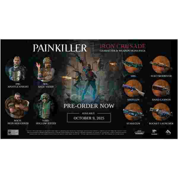 Viča so tvoje igrišče – Skači, drsi in se zavihtni skozi raznolike biome, medtem ko se s klasičnim in novim Painkiller orožjem spopadaš z nasprotniki – v co-op načinu ali brez povezave z bot-i. Groteskne grozote te čakajo – Čakajo te raznoliki sovražniki: od manjših demonov do orjaških nočnih mor. Sprosti bolečino – Uporabi tarot karte za izboljšanje svojih sposobnosti in jih kombiniraj z močmi soigralcev za uničujoče napade. Premisli, koga izbrati – Igraj kot eden od štirih edinstvenih likov – Ink, Void, Sol ali Roch – vsak s svojimi posebnostmi za več energije, zdravja, moči in škode.