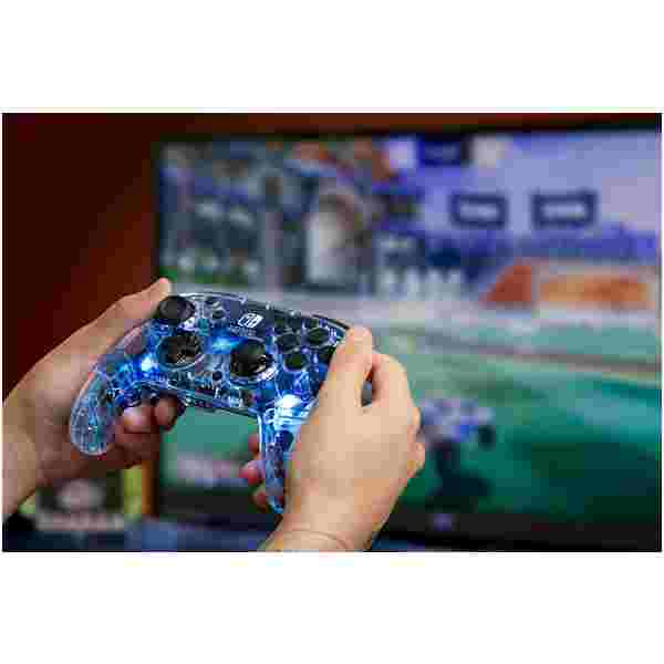 Z novo zatemnilno svetlobo, ki je na voljo prek LED lučk lahko vsak igralec nastavi svojo najljubšo barvo. Kontroler je narejen iz polikarbonatnega ohišja, ki razkriva notranje vezje kontrolerja, povezava je brezžična, baterija vzdržljiva za dolgotrajno igranje. Poleg tega je vgrajen 3,5-milimetrski priključek za slušalke, ki podpira zvok za igre in klepete, tipke lahko reprogramirmo.