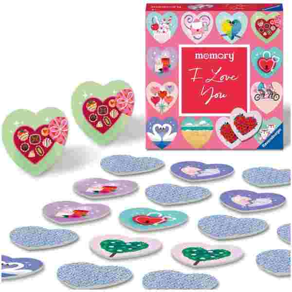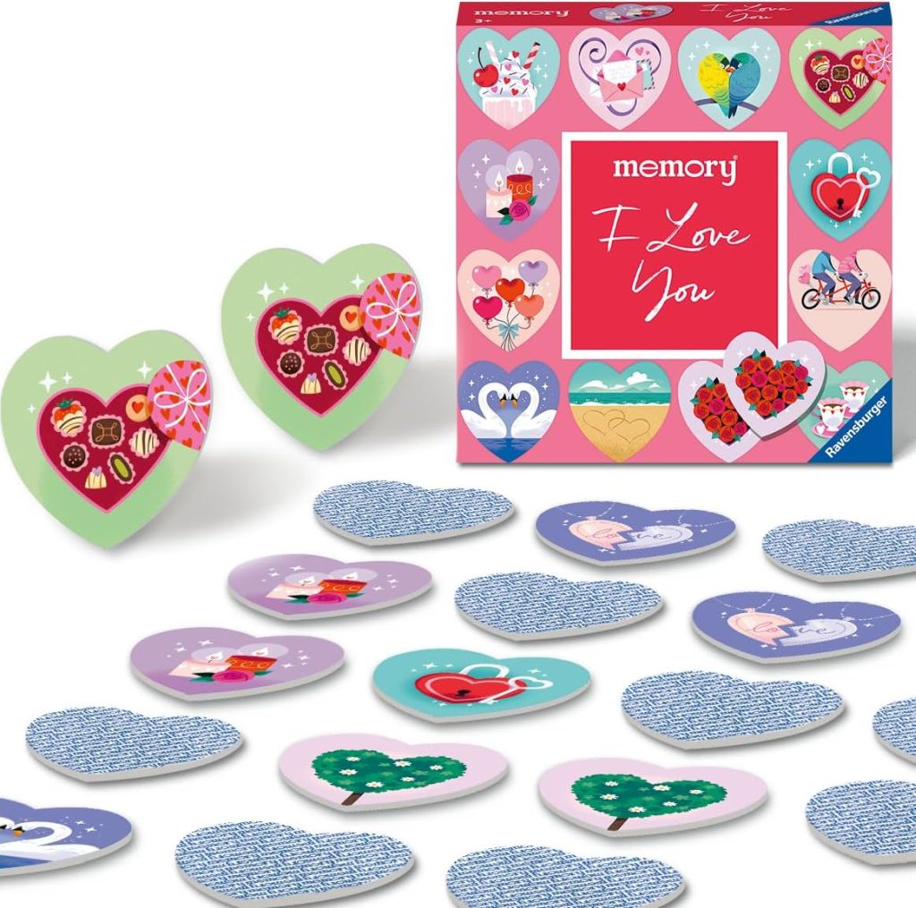 „I love you“ je čudovita različica klasične družabne igre memory, oblikovane posebej, da izrazite naklonjenost. Na 48 srčasto izrezanih karticah (24 parov) boste našli nežne motive: zaljubljeni ptička, rdeče vrtnice, pisma in simbole ljubezni – vse v srčni obliki, ki poudari nežnost in toplino. Zbira se dve enaki sliki in tisti, ki zbere največ parov, zmaga. Namen igre ni le zabava, ampak tudi prijazen način, kako nekomu povedati: "Res mi je mar zate."