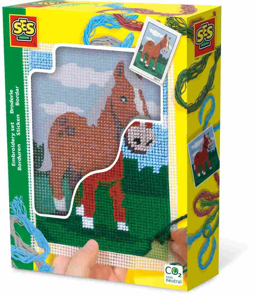 Bodite ustvarjalni in se naučite novih spretnosti s SES ustvarjalnim kompletom Vezenje konjičkov! Odličen način za otroke, da se naučijo pozabljene umetnosti – vezenja, ki je zabavno in enostavno. Ta enkratni komplet vsebuje predpripravljeno sliko za vezeje velikosti 20x14cm, prejo, varno iglo z navojem ter jasna navodila, zato je kot nalašč za otroke. Primerno za starost 6l+