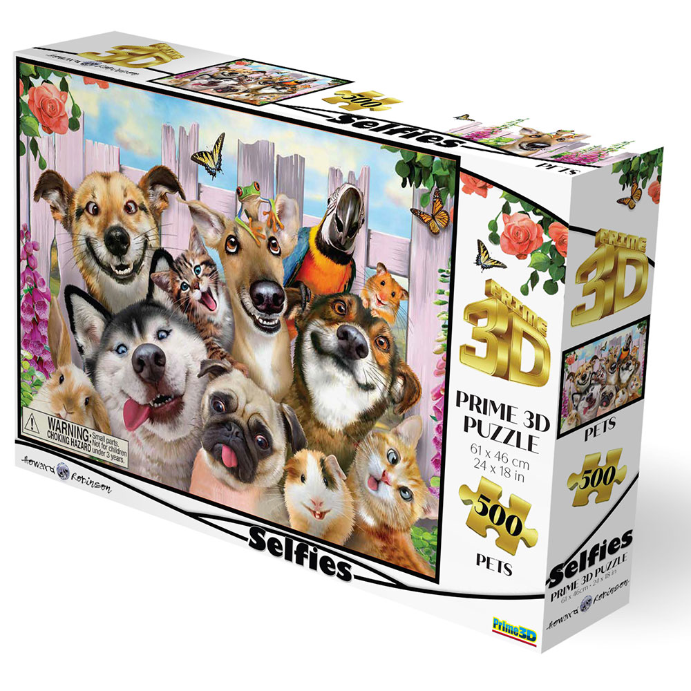 Super 3D puzzle z zabavnimi selfie slikami s serije Howard Robinson. Dimenzija sestavljenega puzzla je 61×46 cm in vsebuje 500 koščkov.