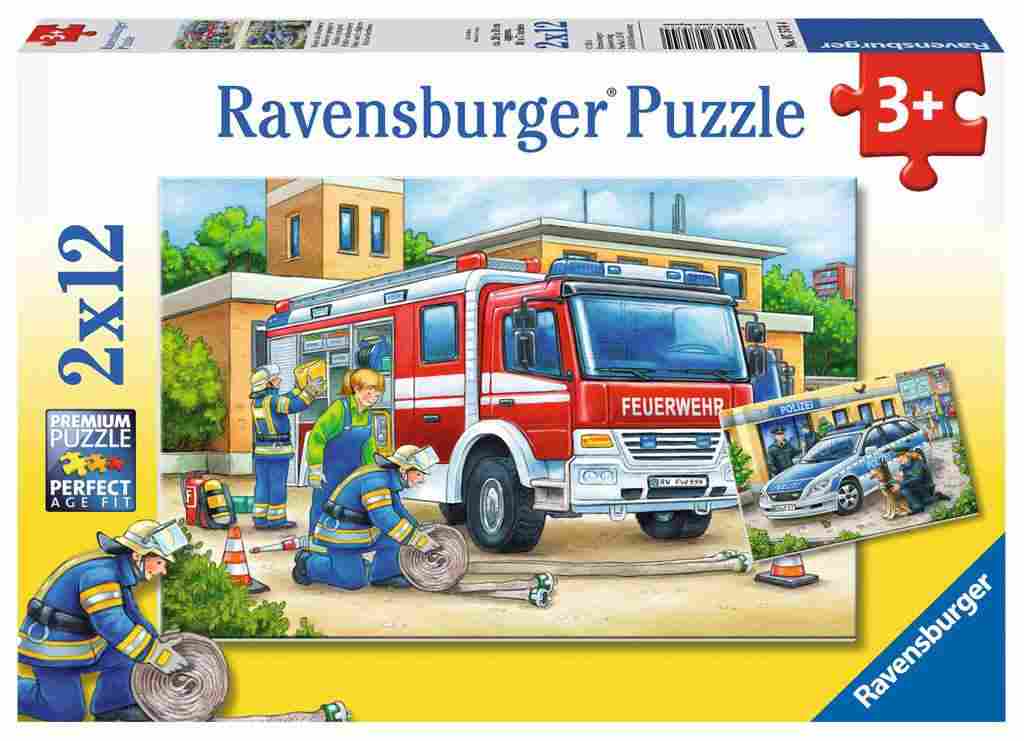Gasilci in policiti. Sestavljanka 2x12delov, ter mini poster, velikost slike 26 x 18cm. Pedagoško dragocen izdelek, z veliko učne zabave in izdelano iz trajnostno naravnanega gozdarstva. Primerno za starost 3l+