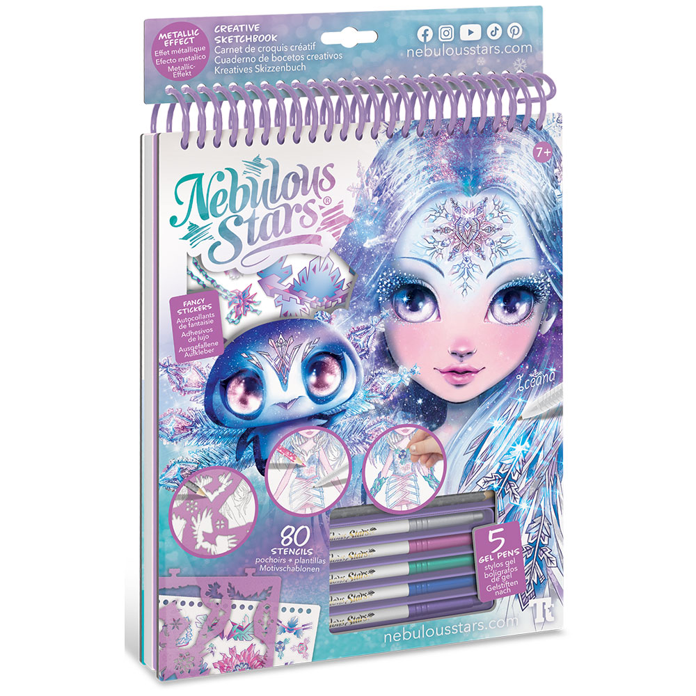 Naj vaše kreacije zažarijo kot srebrne zvezde! Klasična modna skicirka je obogatena z gel pisali in ozadji v kovinskih barvah. Spoznajte Iceano in njen ledeni slog skozi vrsto ustvarjalnih dejavnosti.