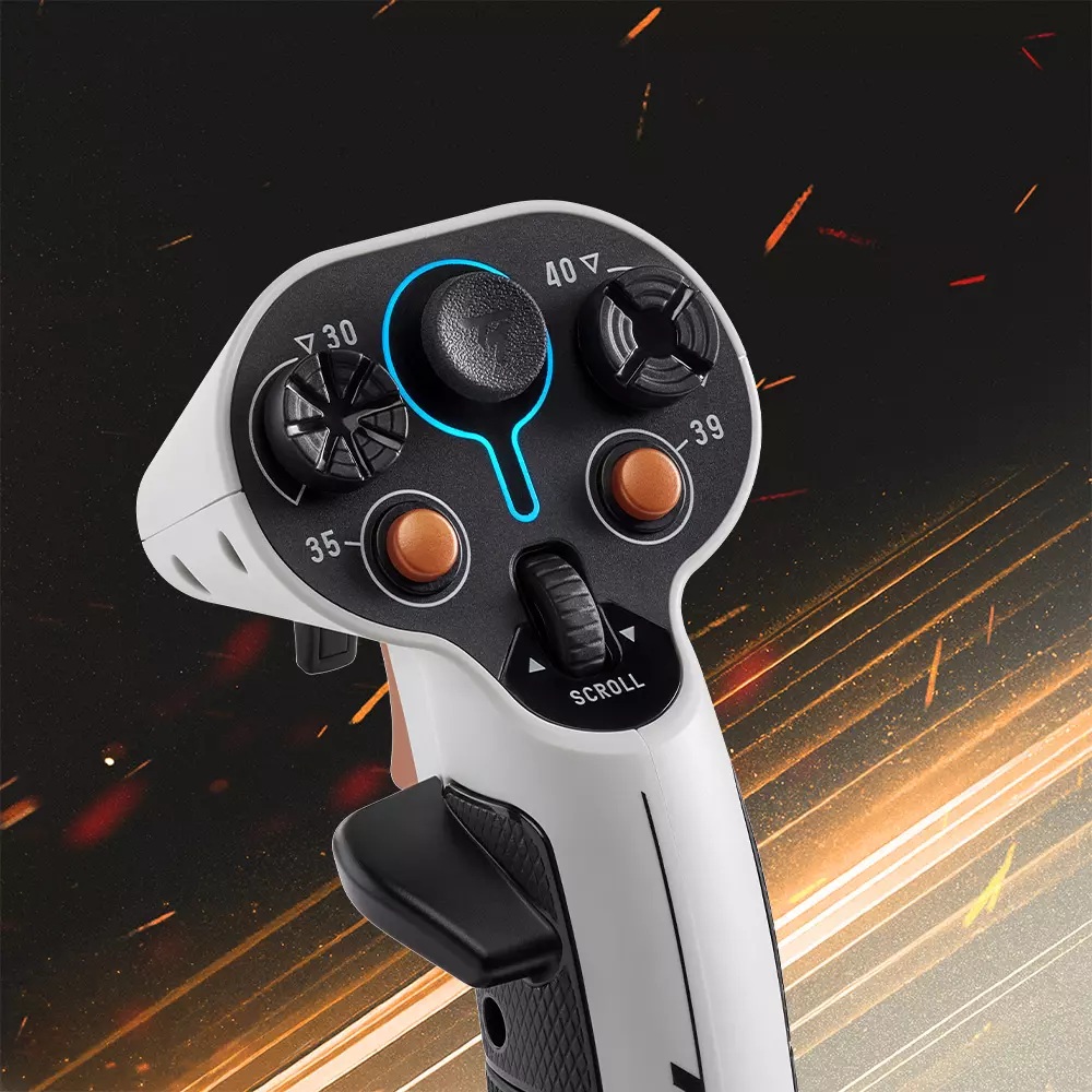 VEČFUNKCIJSKE LETALSKE PALICEHOSAS konfiguracija Sol-R 2 HOSAS Space Sim Duo prinaša izjemno realistično in poglobljeno izkušnjo vesoljskega letenja, hkrati pa omogoča še več akcij s palcem. Vsaka palica ima 21 gumbov, vključno z 2 sprožilcema (1 dvojni sprožilec), 2 hat-stikaloma, 1 ministickom in 1 palčnim kolescem – za popolno spretnost pri pilotiranju ladje.