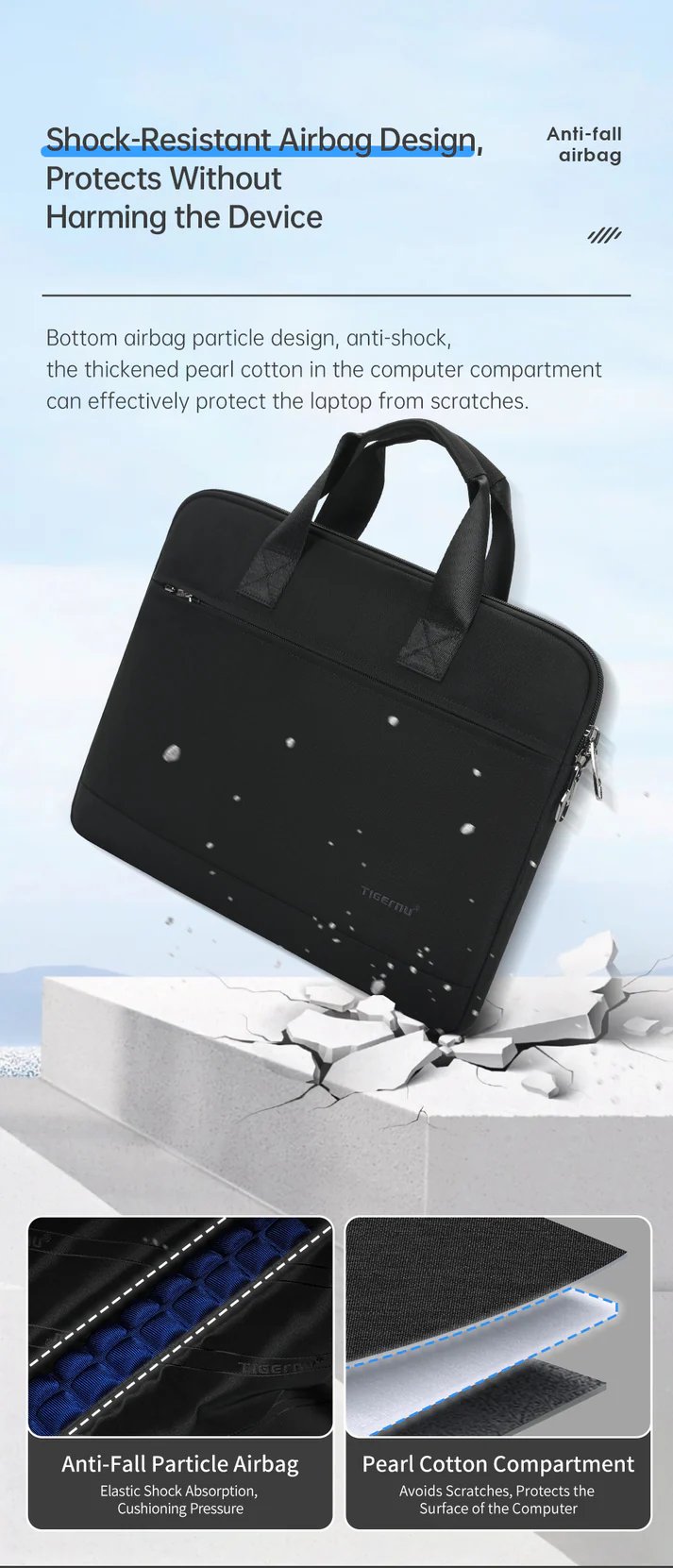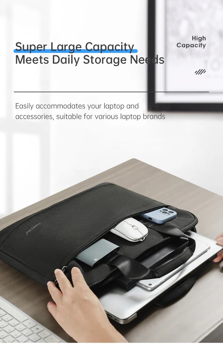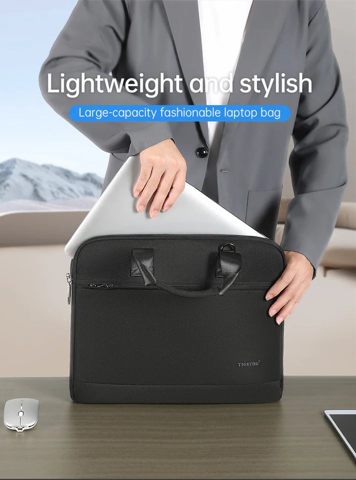TIGERNU torba za prenosnik je odlična izbira za vse, ki želijo svoj prenosnik prenašati varno in v urejeni, elegantni poslovni obliki. Oblazinjen predal nudi zanesljivo zaščito naprave, dodatni žepi pa poskrbijo za shranjevanje osnovnih potrebščin, kot so polnilec, dokumenti in telefon. Trpežni materiali in udoben ročaj ali ramenski pašček omogočajo prijetno uporabo tako na poti kot v službenem okolju. S svojim čistim, profesionalnim videzom se torba odlično poda vsakodnevnim delovnim obveznostim.
