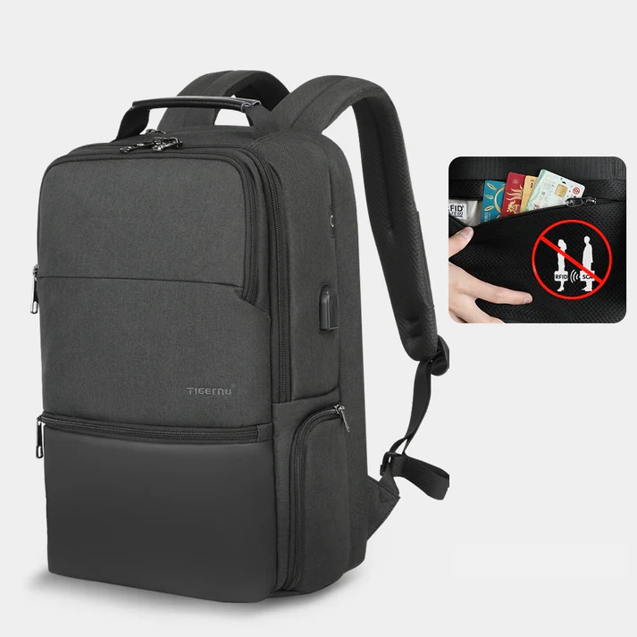 Dodatne značilnosti: Odporen na brizganje vode, polnjenje prek USB-ja, udoben ročaj, dvoslojna ojačana zadrga, izjemno močni šivi, večnamenski skriti zadnji žep varen pred krajo z RFID zaščito, žep z zadrgo na naramnici, trak za pritrditev na ročaj kovčka, dva stranska žepa.