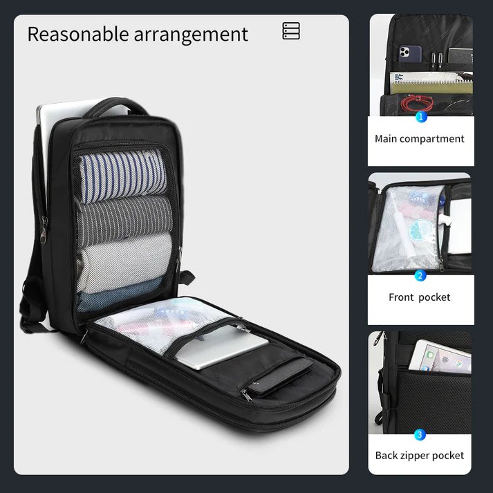 Dodatne značilnosti: Odporen na brizganje vode, udoben ročaj, izjemno močni šivi, večnamenski skriti zadnji žep varen pred krajo, žep z zadrgo na naramnici z RFID zaščito, trak za pritrditev na ročaj kovčka.